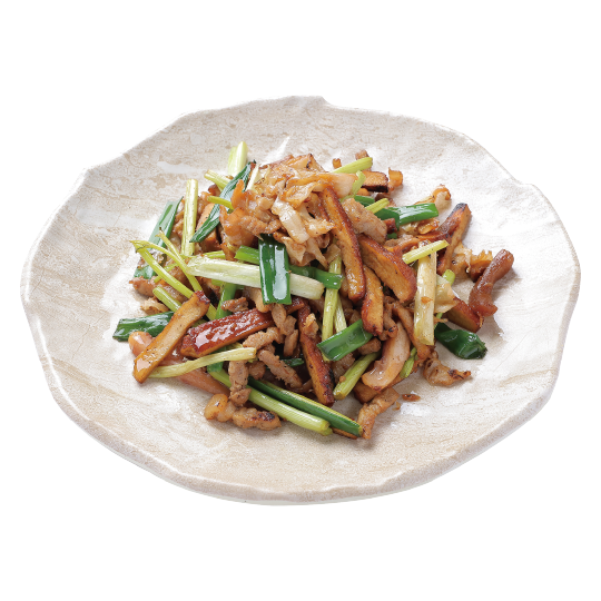 有肉絲、豆干、魷魚鹹香入味,吃起來口感很棒。是必點的客家熱炒。(有蝦米成份)